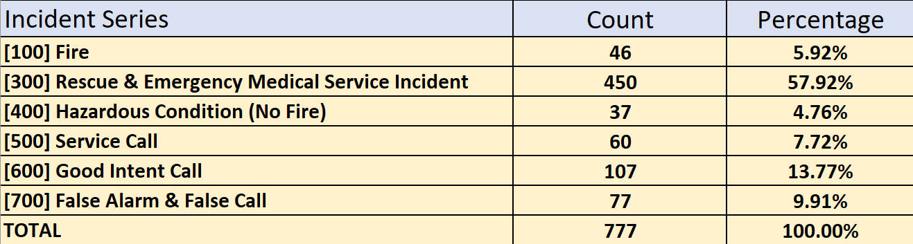The Cannon Township Fire Department responds to numerous calls throughout the year. A summary breakdown of these calls for the year 2025 is as follows: